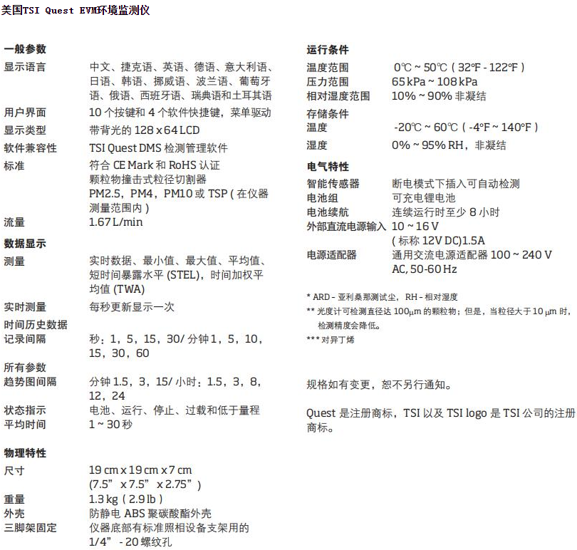 美國(guó)TSI EVM環(huán)境監(jiān)測(cè)儀 相關(guān)參數(shù):