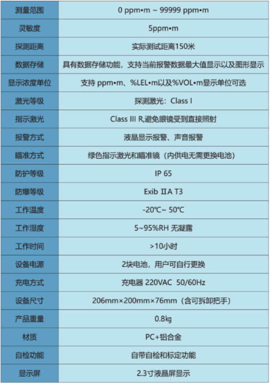 | 便攜遙測式激光甲烷檢測儀(長距離)技術參數 | |