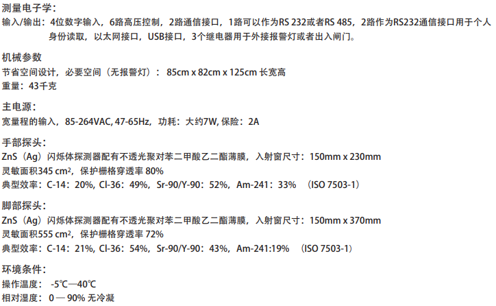 用于測量和記錄醫學、放射化學和核工業的工作人員的手、腕和腳的表面污染。