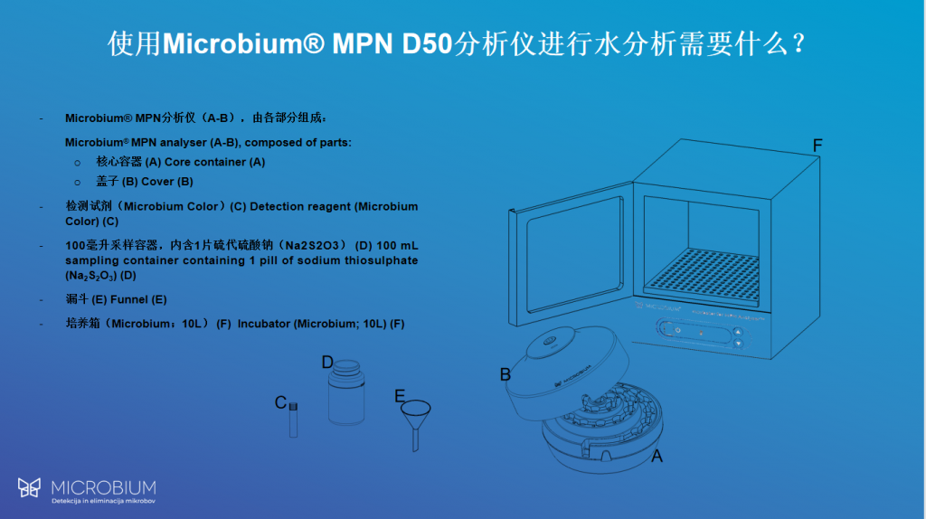 Microbium? MPN D50 分析儀是世界上領(lǐng)先的能夠?qū)︼嬘盟U水和加工水中的大腸桿菌和大腸菌群進(jìn)行檢測和定量的自動化設(shè)備。