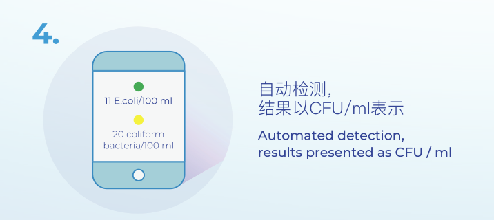 它是基于MPN法(最可能數(shù)法),根據(jù)ISO 9308-2,MPN法是定量測定水中大腸桿菌和大腸菌群的標(biāo)準(zhǔn)實(shí)驗(yàn)室方法。在這種方法中,所取水樣被稀釋數(shù)倍,然后將稀釋液接種到培養(yǎng)基的瓊脂上。 在37℃下培養(yǎng)后,對按單個(gè)稀釋度生長的菌落進(jìn)行計(jì)數(shù),然后根據(jù)稀釋度重新計(jì)算水樣中的初始濃度。該方法本身非常耗時(shí),需要使用大量的實(shí)驗(yàn)材料,在實(shí)驗(yàn)室進(jìn)行,工作人員必須具備相應(yīng)的微生物學(xué)知識。