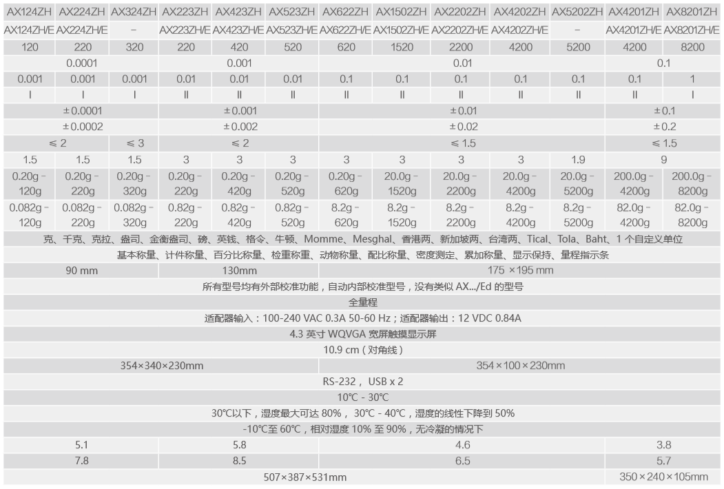 美國ORION奧立龍 ADVENTURER AX 系列電子天平產品技術參數: