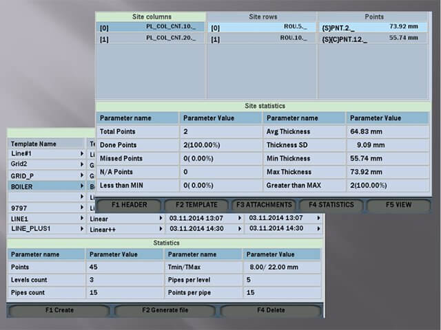 大型試樣的厚度測(cè)量中最重要和最困難的任務(wù)之一就是正確組織測(cè)量結(jié)果,以利于分析。 使用Sonocon BL,操作員可以選擇與幾乎任何類型的試樣相對(duì)應(yīng)的幾種模板之一: