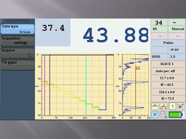 厚度B掃描是由超聲波束產(chǎn)生的測(cè)試件的一部分,使用帶有編碼器的任何一維掃描儀都可以輕松獲取。 它顯示了后壁輪廓,可用于評(píng)估腐蝕類型。
