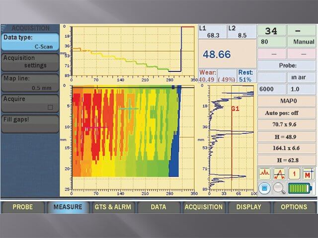 厚度C掃描是使用2D掃描儀獲取的,或者是使用1D掃描儀進(jìn)行的一系列線性掃描的,用于腐蝕映射。