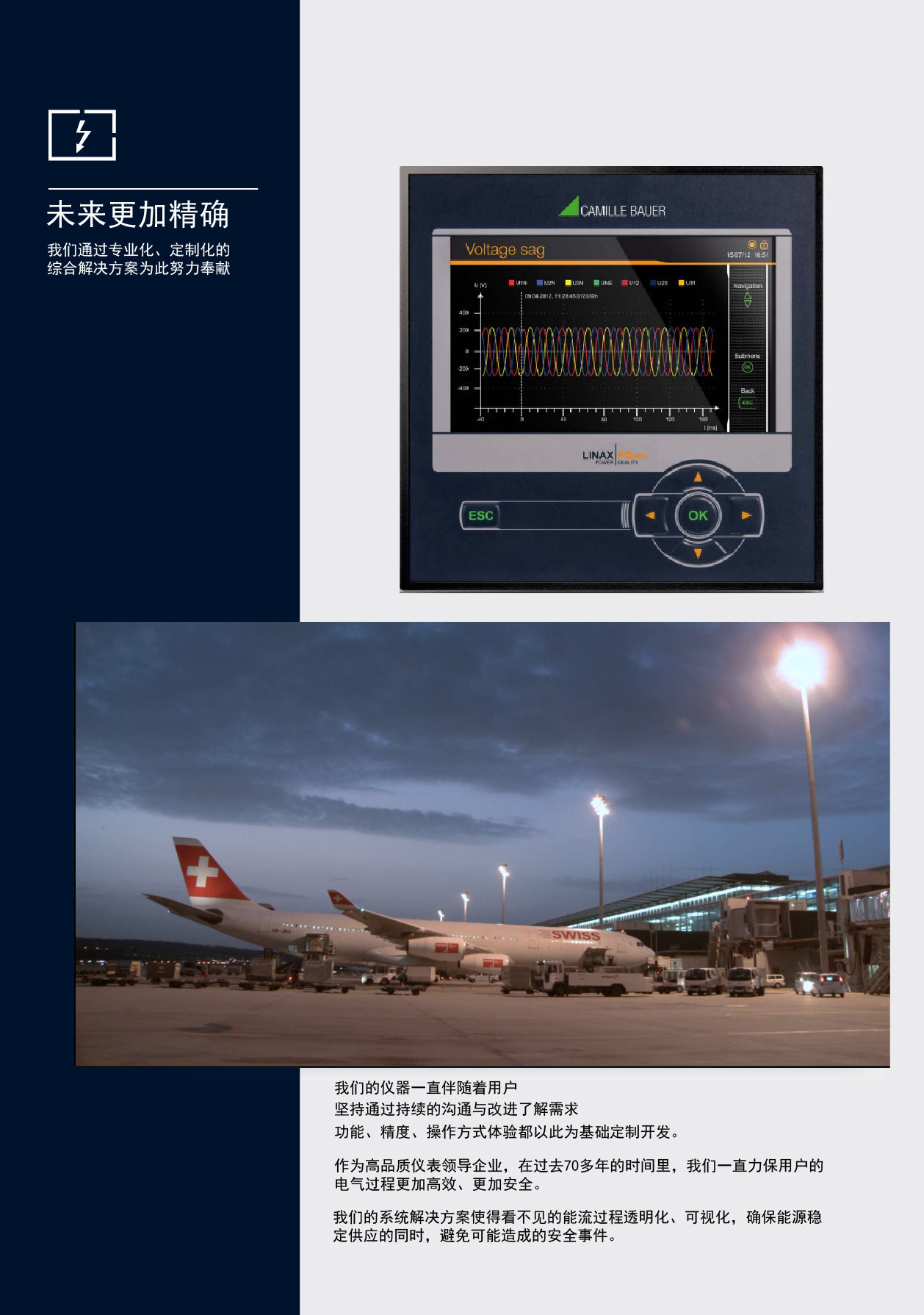 電能質量分析儀Power visa是美國電力士公司最新一代的便攜型電能質量分析儀,也是目前市場上最新一代的專業分析儀。Power visa在安裝、使用和設置方面非常簡單直觀,符合了當前測量儀器的最新發展趨勢。在功能上,Power visa不但具有國家標準要求的電能質量基本測量功能,還具有高級的動態電能質量測量和錄波功能。測量數據可以在儀器配置的中文版軟件DranView中進行分析,并通過其報告編輯器非常方便的生成包括按照中國電能質量國家標準的測試報告。
