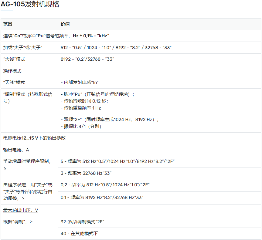 俄羅斯TECHNO-AC品牌電纜管道定位器AG-309.15N發射機AG-105 產品參數: