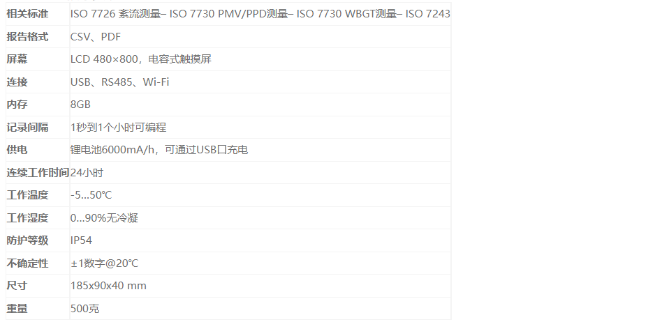 PMV/PPD-WBGT和TU測量,符合ISO 7726,ISO 7730和ISO 7243標準要求