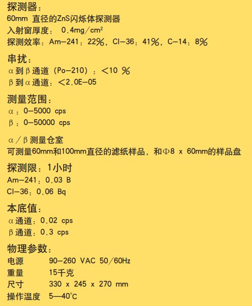 同時α和β活度測量,可測量60mm和100mm直徑樣品