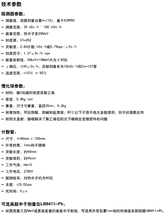 德國伯托 中子劑量當量探測器LB6411 技術參數: