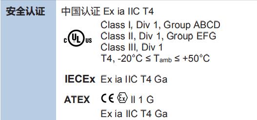 | 安全認證 | 中國防爆: Ex ia IIC T4 Ga |