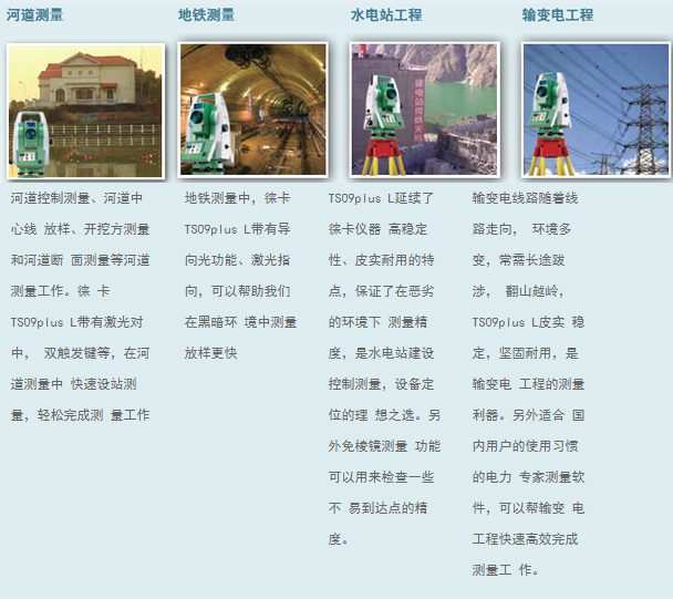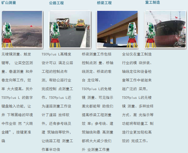 TS09plus L具有更加豐富的機載應用程序和中國本地化定制程序,能夠滿足各種不同測量工作的 需求,解決測量難題,提高工作效率。