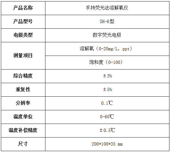 盛奧華 SH-6型手持熒光法溶氧儀 技術(shù)參數(shù):