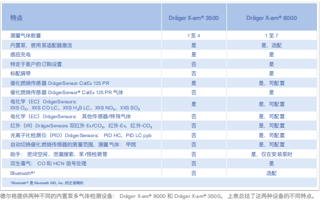 Dr?ger X-am? 3500 和 Dr?ger X-am? 8000 比較: